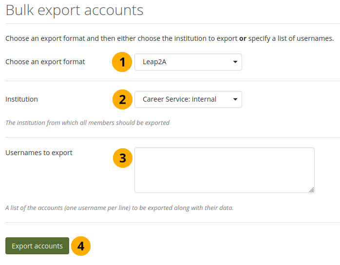 Usernames to export: Alternatively, choose this option if you only wish to export some people’s accounts. Each username must be on a separate line.