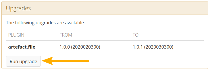 If a core Mahara plugin requires an upgrade, you will see a notice about it and only need to click the button Run upgrade.