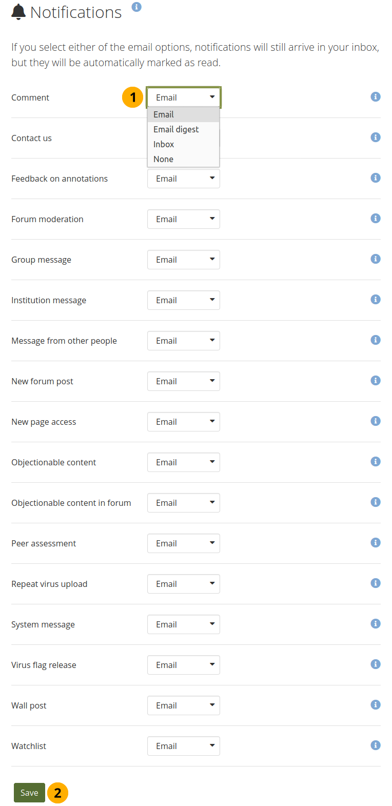 Comment: Notification of any feedback or comments received on your pages, artefacts, or journal posts.