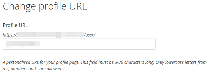 If you see this option, you can choose an identifier for your profile page. Per default, your username is chosen, but you may change that if the site administrator allowed it. Your identifier must be 3-30 characters long. You can only use lowercase letters from a-z, numbers and - (hyphen).