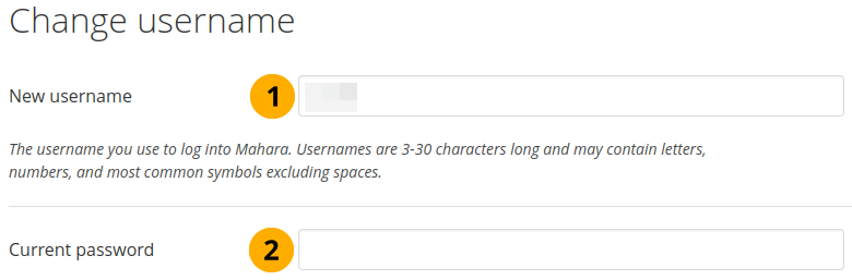 You need a username to log in to Mahara. If your account is not managed by single-sign on or another authentication method, you see this box with your current username in it. You can change your username at any time.