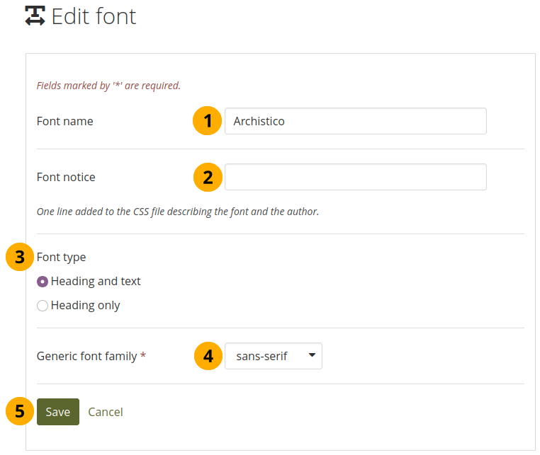Click Edit font properties on the Fonts overview page to make changes to a number of settings of a local font.