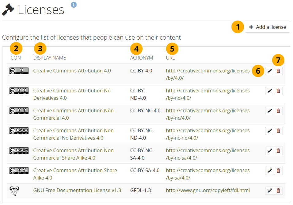 Custom licenses: If allowed, authors can enter any URL as license for their content. If not checked, they will be limited to the licenses configured by the site administrator.
