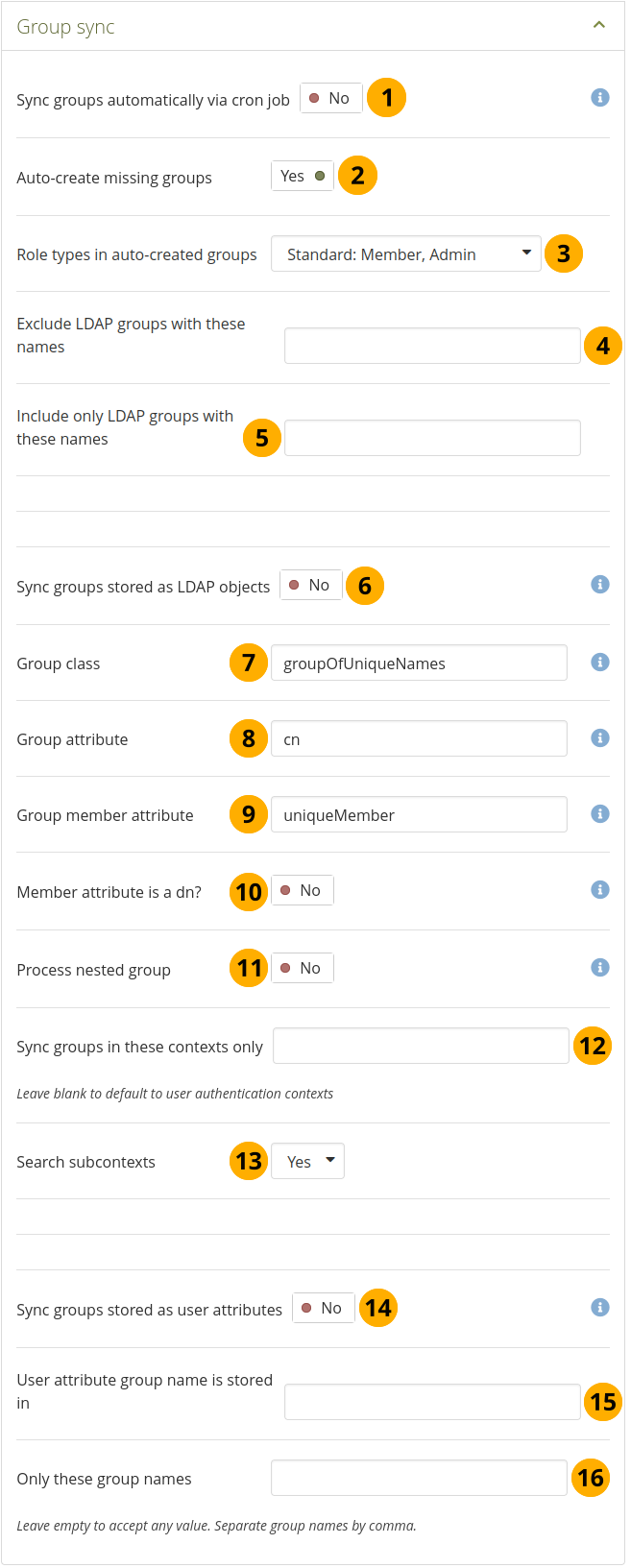 Maximum groups: Maximum number of allowed groups in the institution. If the maximum is reached, no more groups can be created unless the site increases this limit.