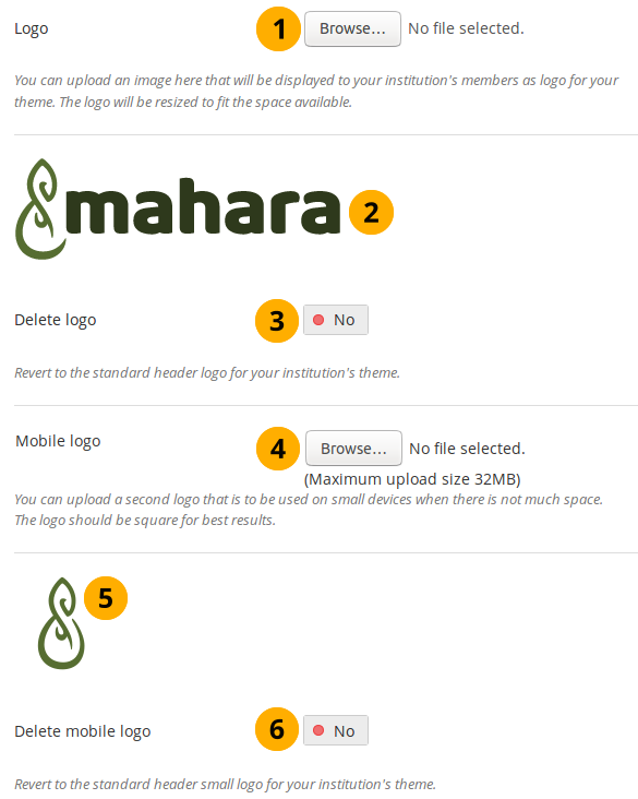 You can also upload a mobile logo to your theme if you prefer to add it there rather than upload it in the institution settings. The ‚Raw‘ theme has a mobile logo that is used in other themes as well unless you upload your own. Ensure that it is a square logo for best results.