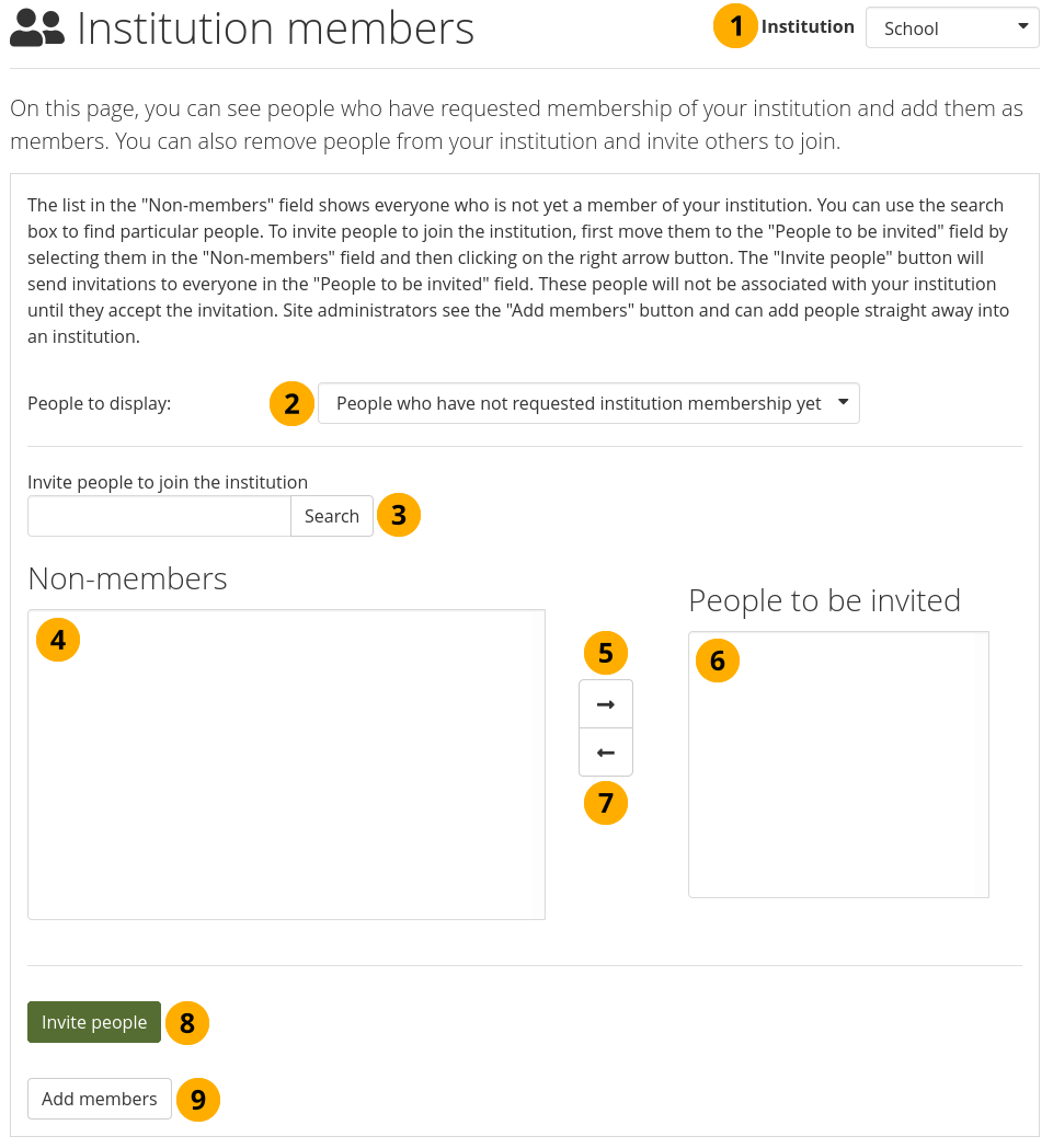 Maximum members: Maximum number of allowed members in this institution. If an institution has a maximum set, and it is reached, any potential new members will be rejected. The site and institution administrator receive a notification to take further steps.