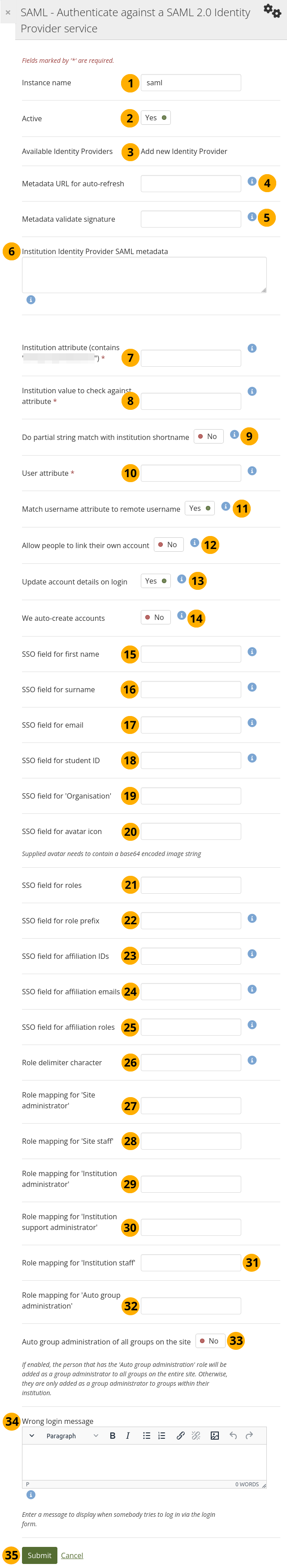 Short name: The institution’s short name. If you set up an institution manually, it converts that name into a lower case shortname. If you create institutions automatically, e.g. via web services or SAML, it is generated based on parameters set out by the automatic process.