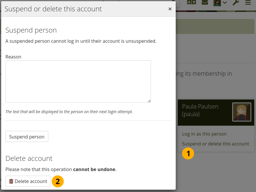 Click the Suspend button to prevent these account holders from accessing their accounts.