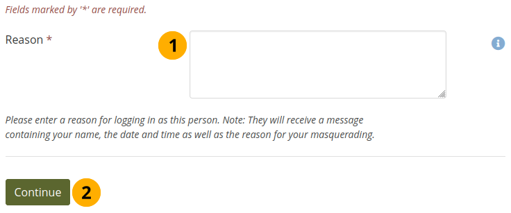 Click the Masquerade button to masquerade as an account holder if you are allowed to.
