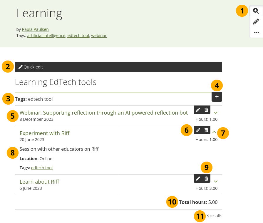 You can add and edit your CPD activities directly from your portfolio page, either in ‚Edit mode‘ or in ‚Details mode‘.