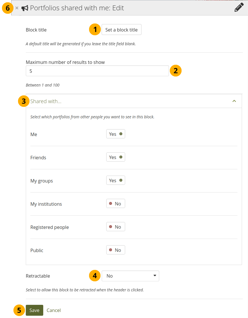 Yes: Allow viewers to reduce the block to just the heading by clicking the Retractable icon .