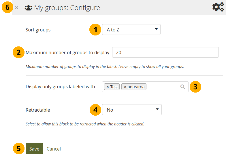 Maximum number of groups to display: Decide how many groups you wish to display in the block before the paginator is shown and the remaining pages can be seen on the next page within the block. Leave this field empty if you wish to display all your groups.