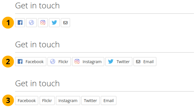 Buttons with icons only: Show only the logos of the social media accounts. This option is a good one if you have lots of accounts and want to save space on your page. However, it might be trickier for people to know instantly which accounts are displayed if they are not familiar with the logos.