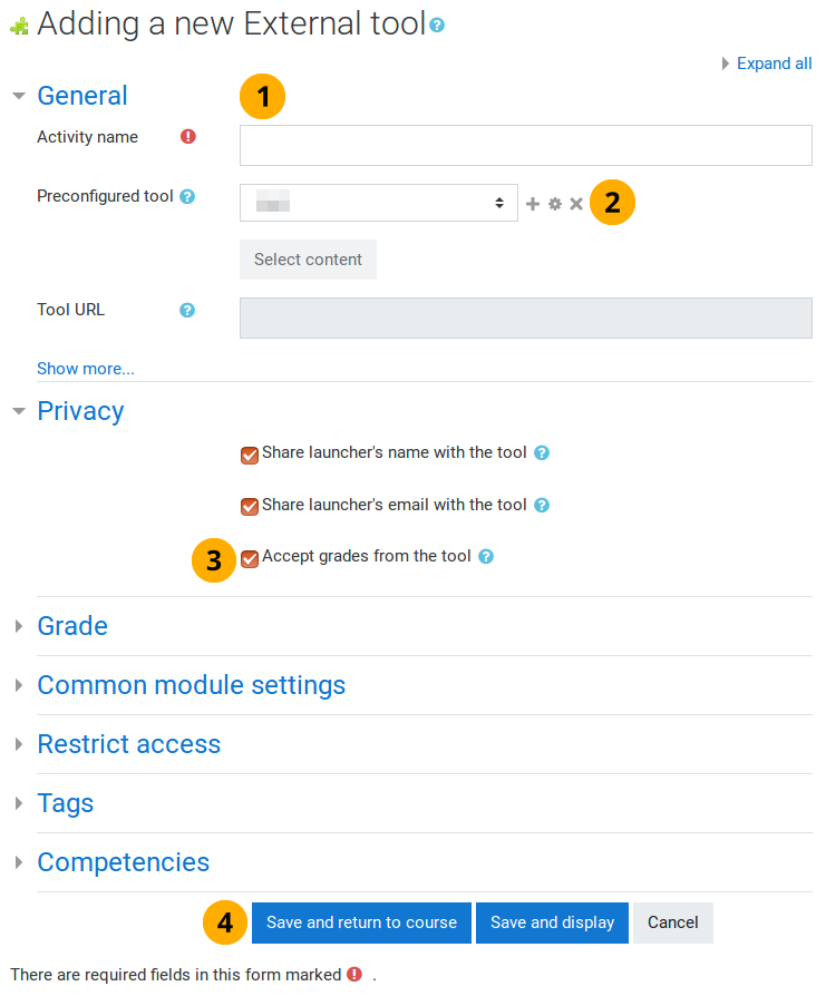Tool configuration usage: Select the option that suits your needs. The default is ‚Show as preconfigured tool when adding an external tool‘.
