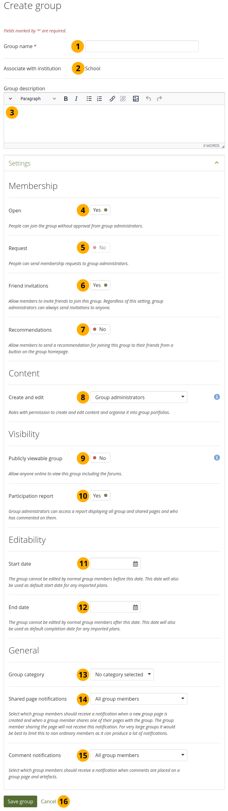Group name: Provide a name for your group. This field is mandatory.