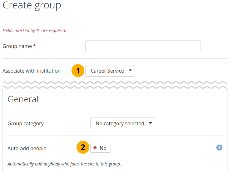 Associate with institution: You can create a group in any institution on the site. Select the institution to which the group should belong from the drop-down menu.