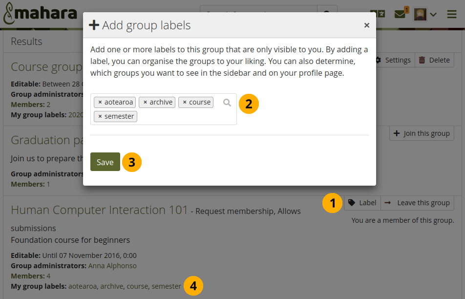6.2.2.4. Filter for labelled groups on your profile page¶