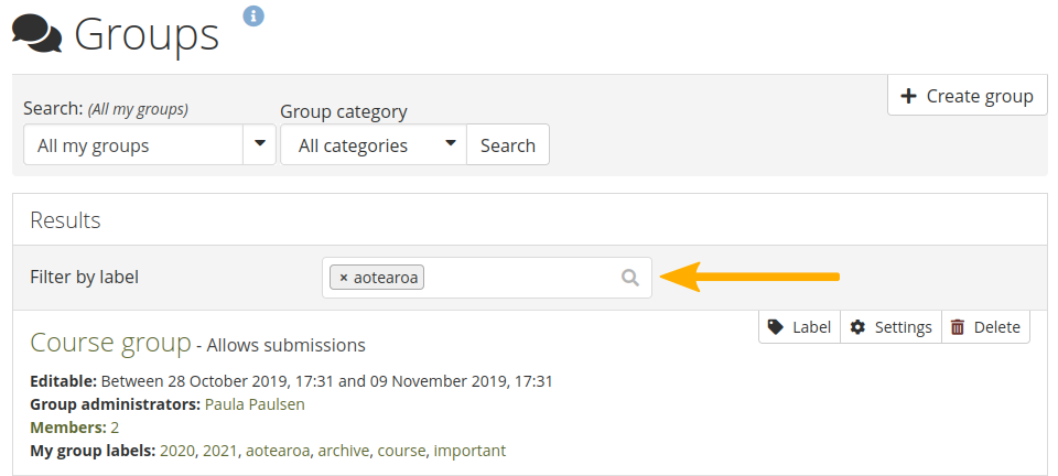 6.2.2.2. Filter for labelled groups on the Groups page¶