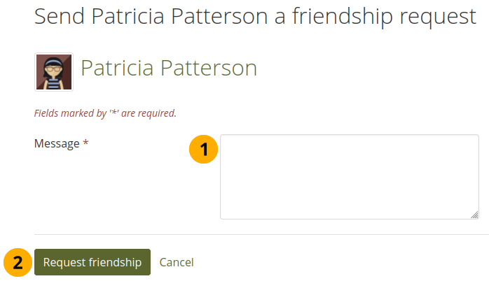 Click the Request friendship button to send off your friend request or click Cancel to abort your action.