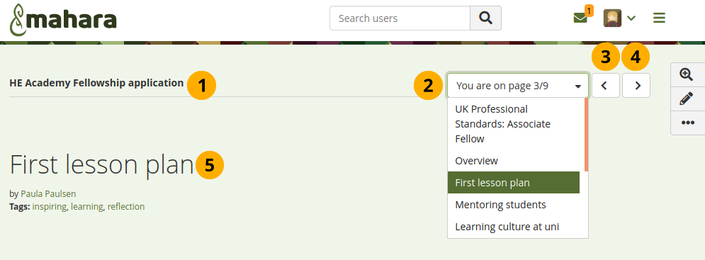 When you submitted a portfolio to a group, you cannot change a great number of the portfolio’s content or delete it until the portfolio is released again. It is displayed with a different coloured background to differentiate it quickly from non-submitted portfolios and also has the Submitted icon.