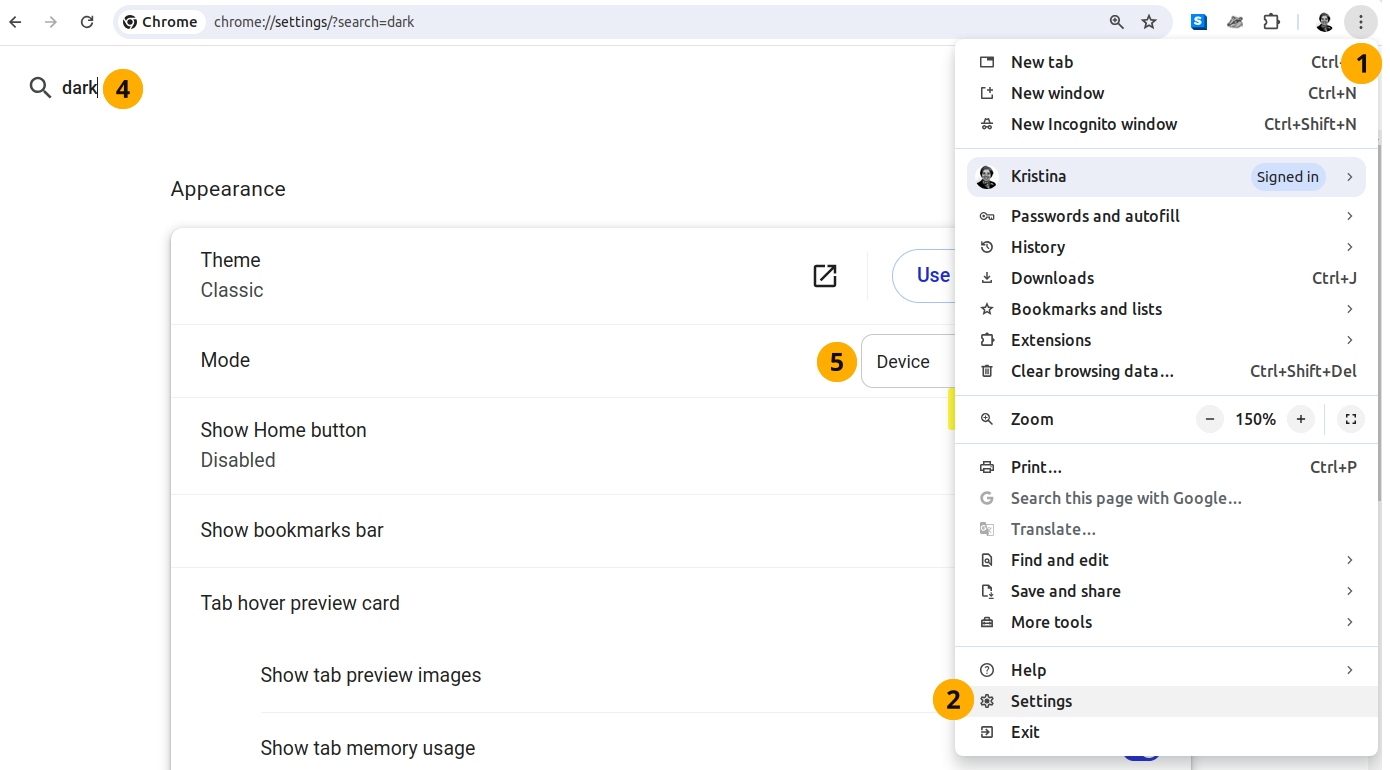 If you can’t enable dark mode on your device for all applications, you can do so in your browser.