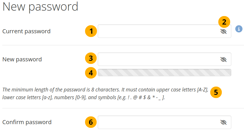 The password strength indicator shows how strong your password is in relation to the password policy.