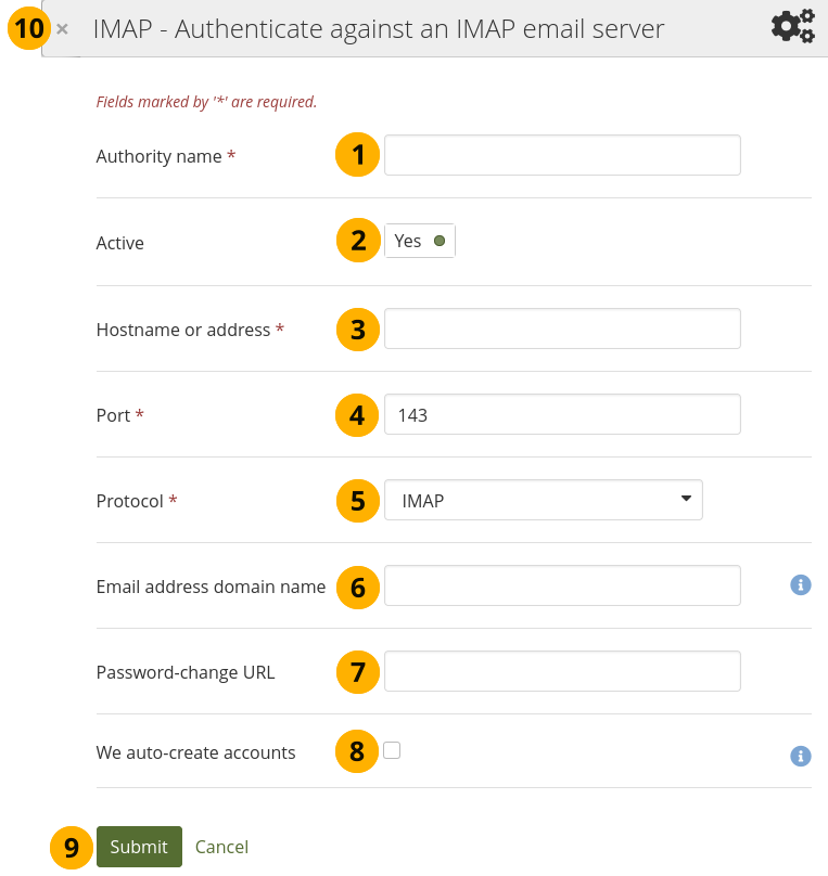 Click the Submit button to save your changes and create this institution, or click Cancel to abort the creation of this institution.