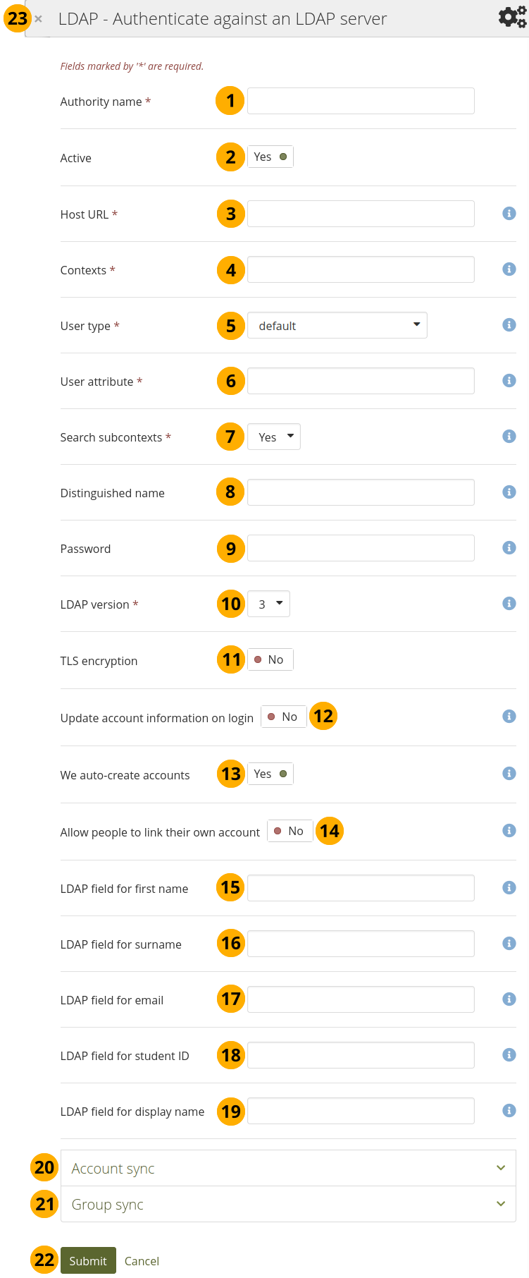 Confirm registration: Switch to ‘Yes’ if you want to control that no new accounts are created unless the administrator approves the registration. You receive a notification about pending registrations when a new person wants to register. If the site administrator requires all institutions to confirm registration, you cannot change this setting to ‘No’.