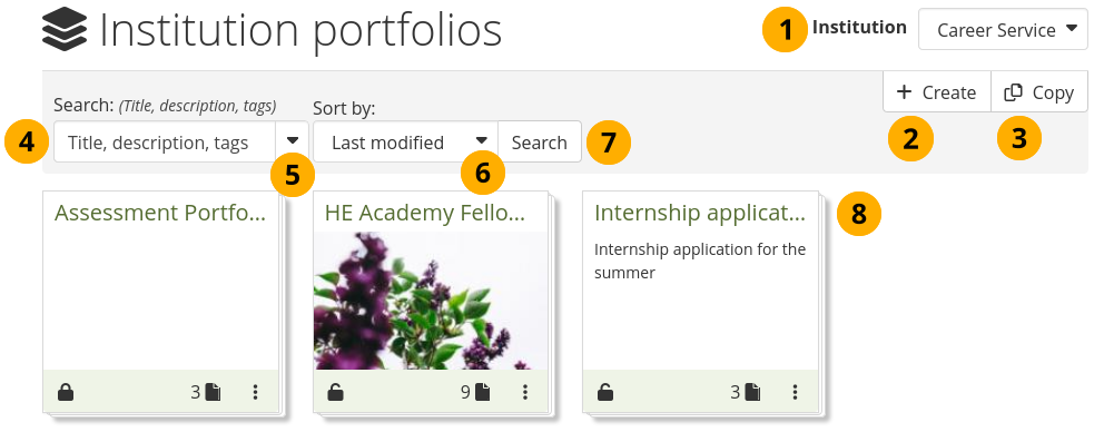 All pages within the collection are turned into template pages, i.e. portfolio authors who copy the collection won’t be able to change the instructions, and the original template page is linked.