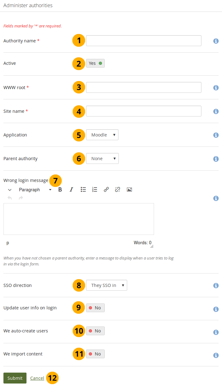 Short name: The institution’s short name. If you set up an institution manually, it converts that name into a lower case shortname. If you create institutions automatically, e.g. via web services or SAML, it is generated based on parameters set out by the automatic process.