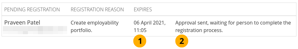 Expires: The date and time by which a self-registering person needs to complete the registration process.