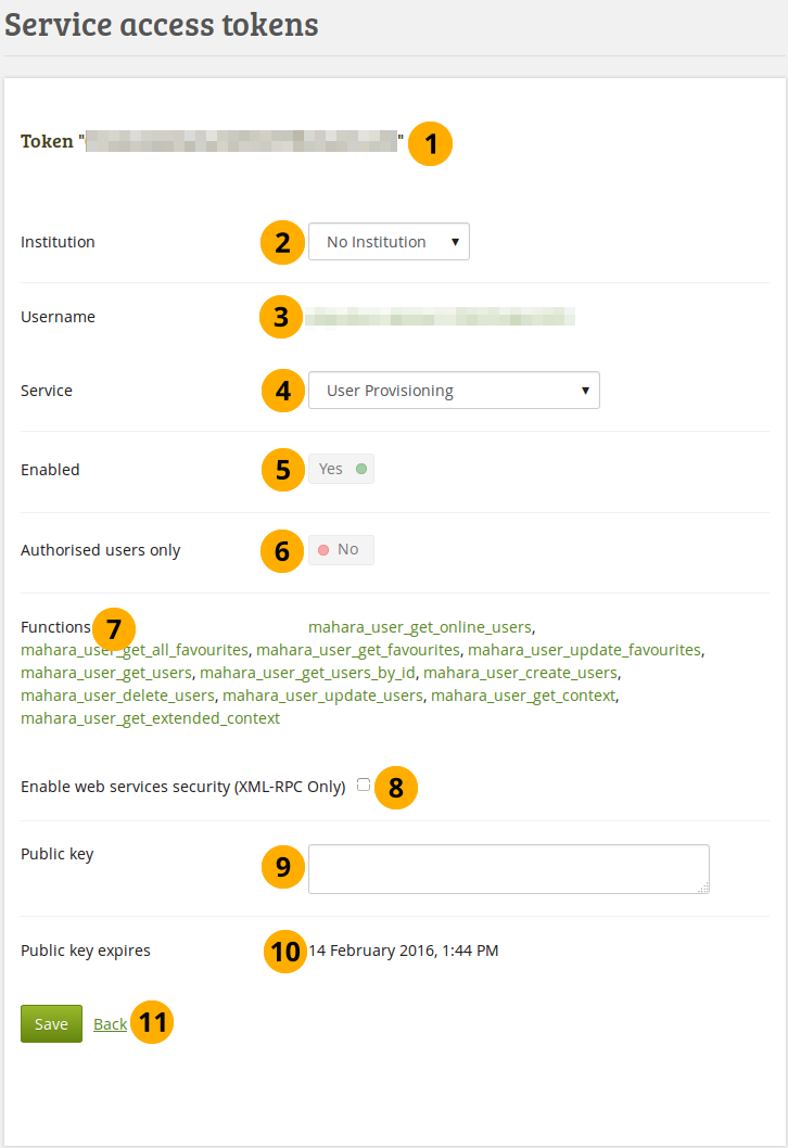 The user token access gives the enitre Mahara userbase the possibility to make use of the API. Therfore generally, it should be restricted to service groups that give access to user-focused functions like mahara_user_get_my_user for the current user’s own details.