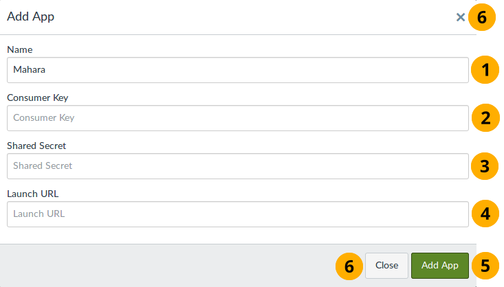 Click the App button to add your Mahara app manually.