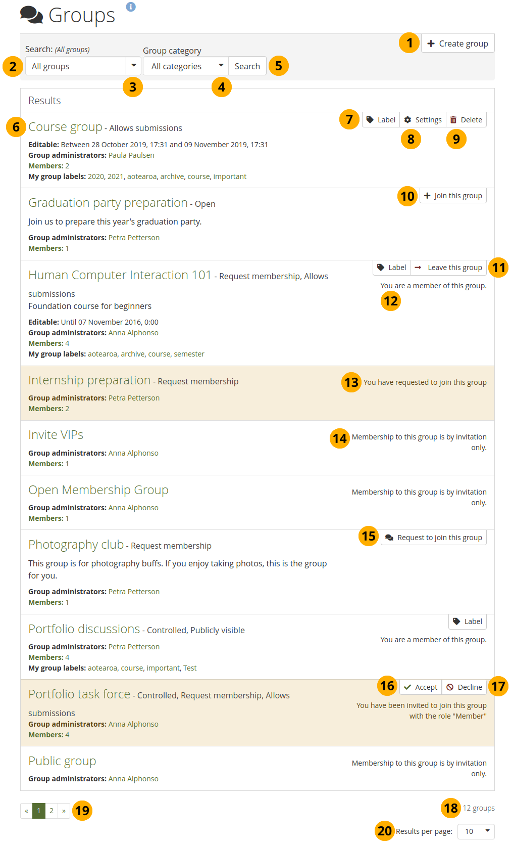 6.2.2.2. Filter for labelled groups on the Groups page¶