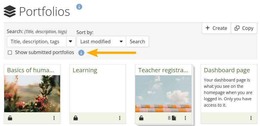 You can view all portfolios that you submitted and that have been released on your portfolios overview page at Main menu → Create → Portfolios.