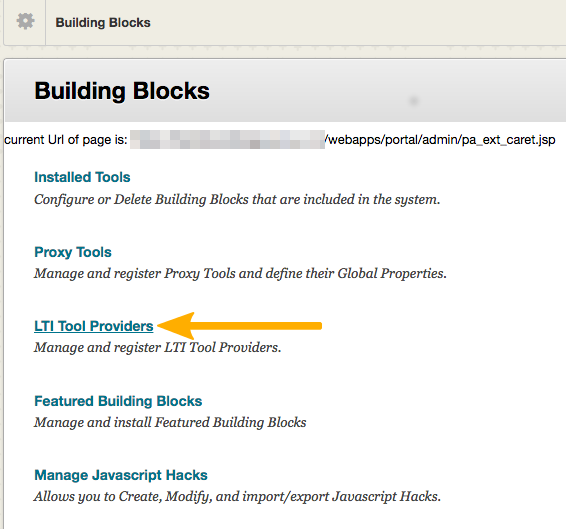 When you are in the Building Blocks area, select LTI Tool Providers to start setting up the connection to Mahara.