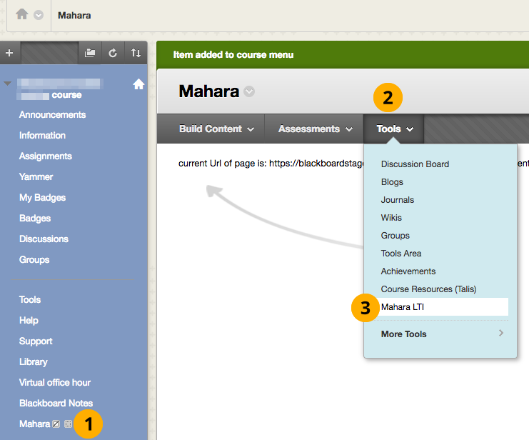 Select the Mahara LTI tool. Note: You may have given it a different name than is displayed here.