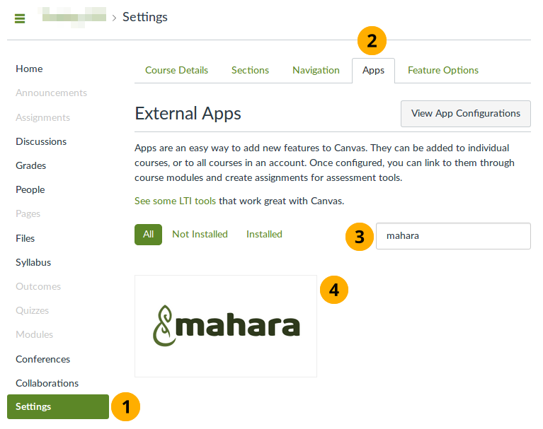 You can set up the LTI connection to Mahara either for all your courses in Canvas or for a single course.