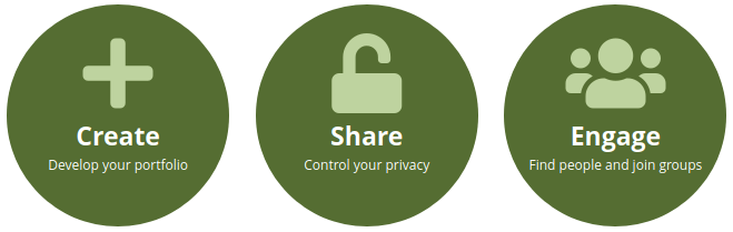 Create: Create your electronic portfolio in a flexible personal learning environment. This takes you to Main menu → Create → Portfolios.
