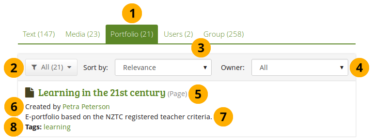 On the search results page click the Portfolio tab to view the results. The tab includes the number of results found.
