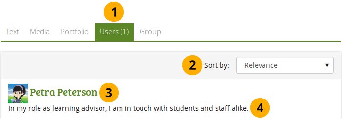 On the search results page click the People tab to view the results. The tab includes the number of results found.