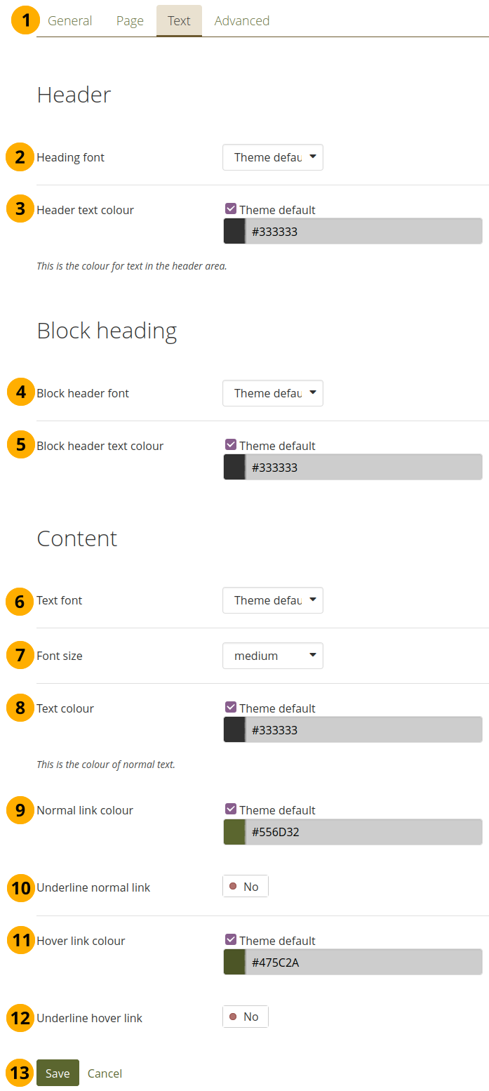 Text colour: Decide on the colour for text that appears on the page. The default setting is to choose your theme’s colour.