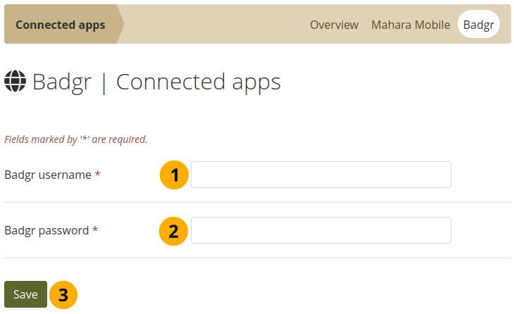 Click the Save button to connect to Badgr. An access token is stored in Mahara instead of the credentials.