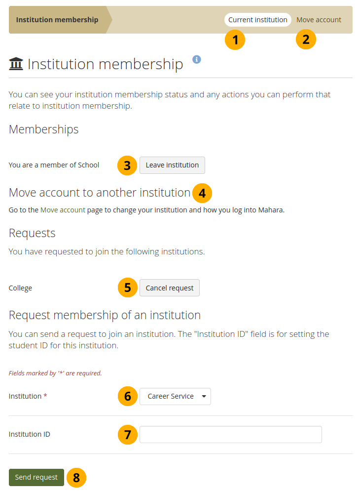 Request membership of an institution: Choose the institution from the drop-down menu that you wish to join.