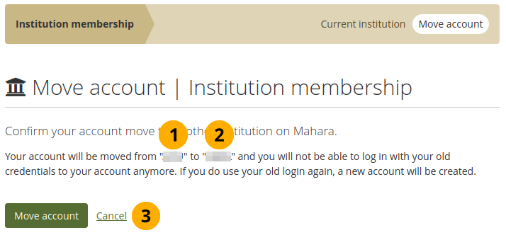 Click the Move account button to finalise your account move to the new institution. If you do not wish to move your account after all, you can click Cancel.
