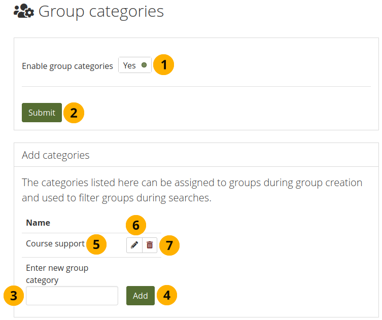 Enable group categories: Switch to 『Yes』 to enable group categories for the entire site.