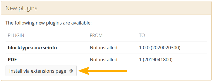 If a plugin needs to be installed, click the Install via extensions page button to be taken to the Plugin administration for the installation.