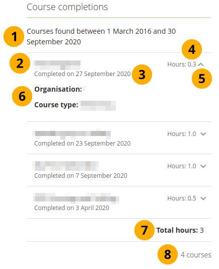 The number of courses that are included in this report.