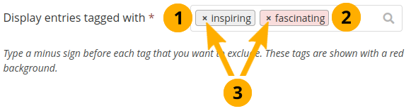 Display entries tagged with: Choose the tags that you want to use to filter all your journal entries for display. Only tags you used on journal entries are available. You can include or exclude tags. See below for more information.