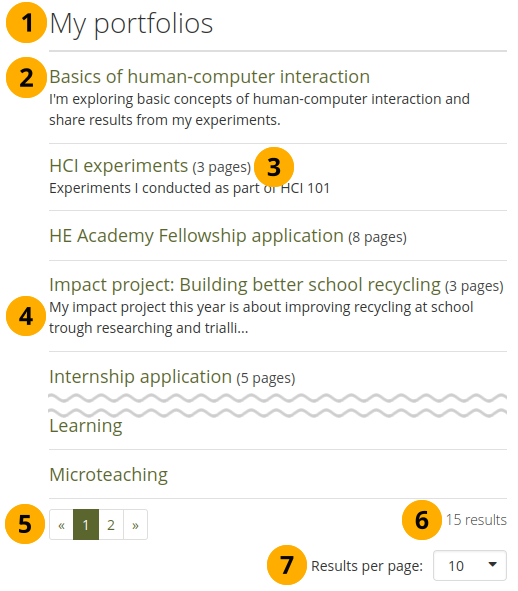 If you would like to see fewer or more portfolios, you can change that here. Per default, 10 portfolios are displayed.